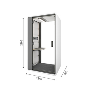 HushFree.S is een belcel die A-label gecertificeerd is volgens de ISO 23351-1:2020-norm. De telefooncel op kantoor beschikt over nieuwe plafondverlichting boven de tafel, met een intensiteit van 500 lux. Hierdoor is langer werken, het voeren van videoconferenties en gesprekken, terwijl de rust en stilte wordt behouden mogelijk. De belcel heeft een in hoogte verstelbaar bureau, waardoor er zowel staand als zittend gewerkt kan worden. Dit zorgt voor een optimale lichaamshouding gedurende het werk. De esthetisch ontworpen verlichting aan de zijkant zorgt ervoor dat het gezicht van de gebruiker nog beter zichtbaar is tijdens videoconferenties. De hushFree.S kan naar wens worden ingericht, met een comfortabele kruk of bureaustoel. Met de akoestische unit is efficiënter werken en het online in contact blijven met mensen mogelijk.