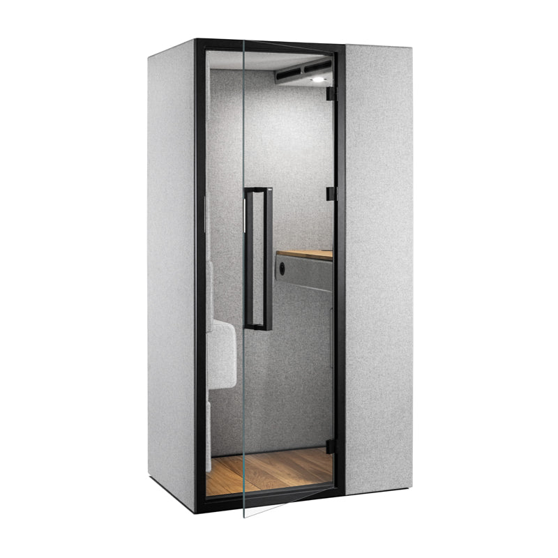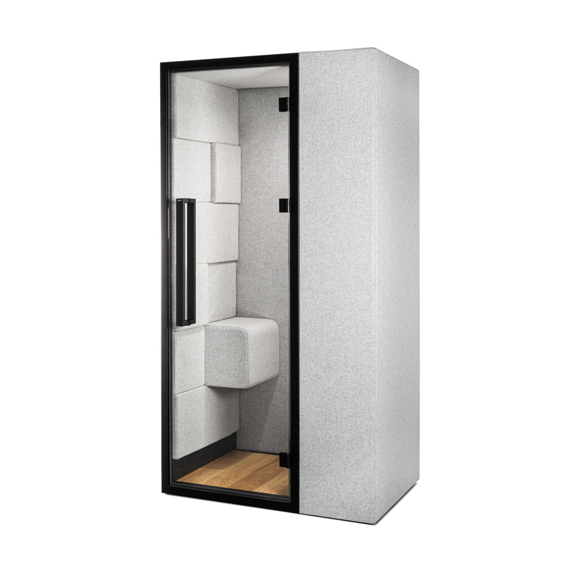 De QUADRA belcel is de oplossing voor een kantoor waar veel gebeld wordt. In de wereld van drukte en lawaai van vandaag is ieder van ons op zoek naar een plek waar je je kunt concentreren op gesprekken. Daarom is deze belcel perfect. Het komt tegemoet aan de behoeften van mensen die in grote steden wonen, garandeert beschutting en stilte voor videoconferenties of telefoongesprekken.